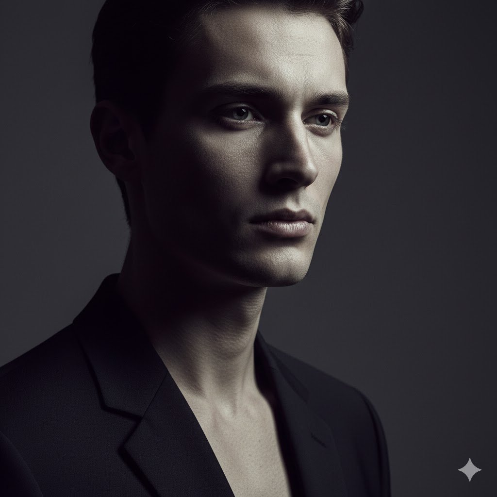 1. “Transform my portrait into a dramatic, high-fashion editorial shot under moody studio lighting, emphasizing sharp facial contours and a contemplative expression. Add a subtle, dark-toned background with minimal texture.”
