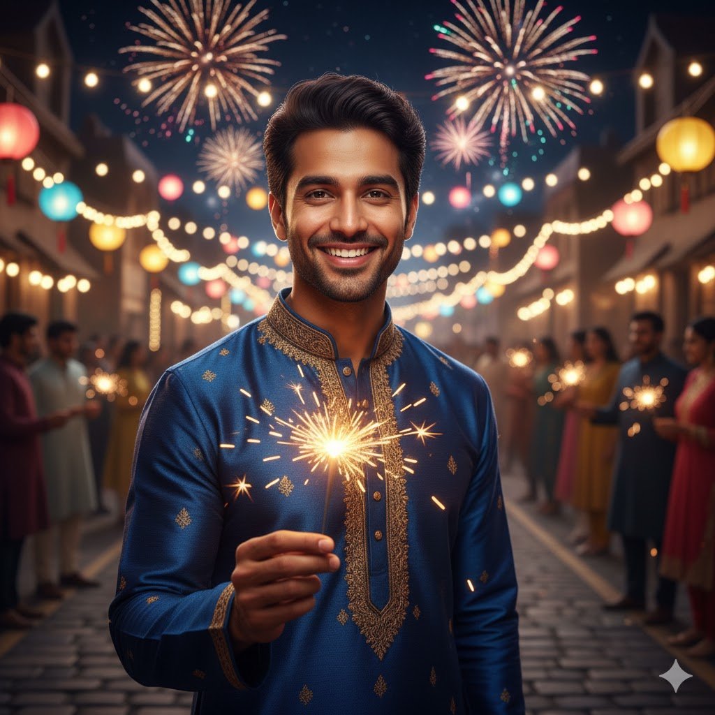 “Edit my photo to look like I’m holding a sparkler with Nano Banana glow effects, festive lighting, and hyper realistic reflections.”