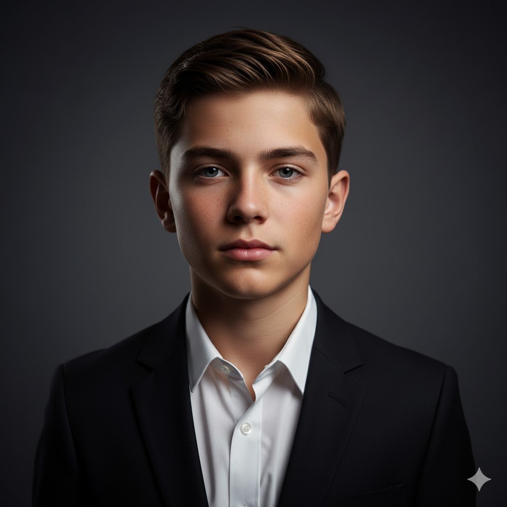 “Create a hyper realistic portrait of a boy in a black suit under softbox lighting, with Nano Banana detailing for skin texture and sharp focus.”